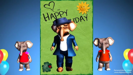 Geburtstagsvideo mit Namen und persönlichen Grußtext. Name und Gruß-Text erscheinen im Video. Wunschnamen (Namen, Kosenamen,Spitznamen usw…) angeben und ein persönliches Geburtstagsvideo erhalten dass Sie beliebig vom Handy, PC, Tablet usw... versenden können. Kurzen Geburtstagsgruß angeben, wie z.B. „Alles...Regulärer Preis €11,90Regulärer Preis €11,90 -
